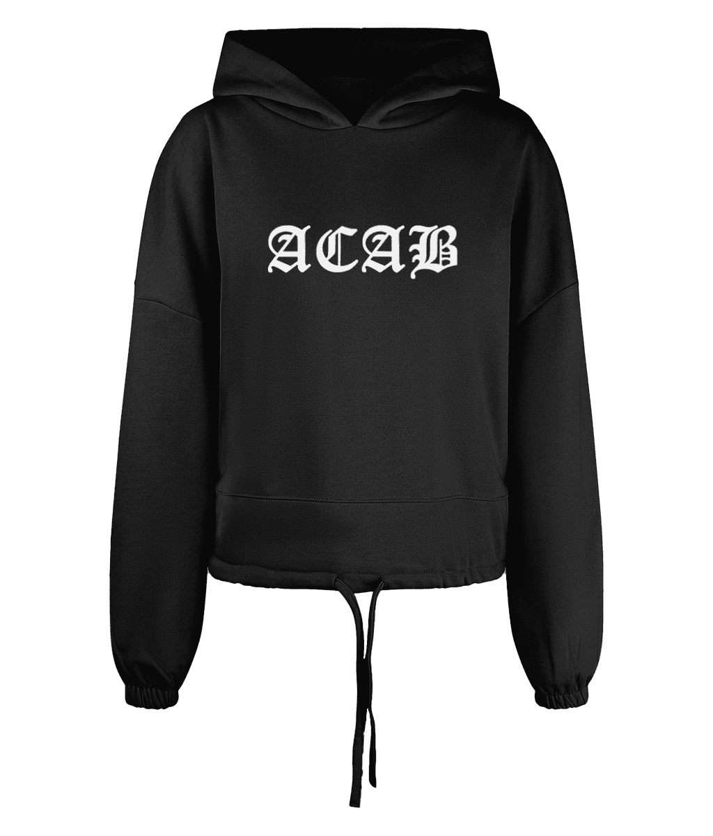 ACAB women’s cropped oversized hoodie for gigs, marches, and everyday defiance. The boxy, relaxed cut with dropped shoulders and an adjustable drawcord hem moves with you when the crowd gets loud, and the crisp front print keeps the message unmistakable. Built for activists who don’t flinch and don’t apologise. DTF print.