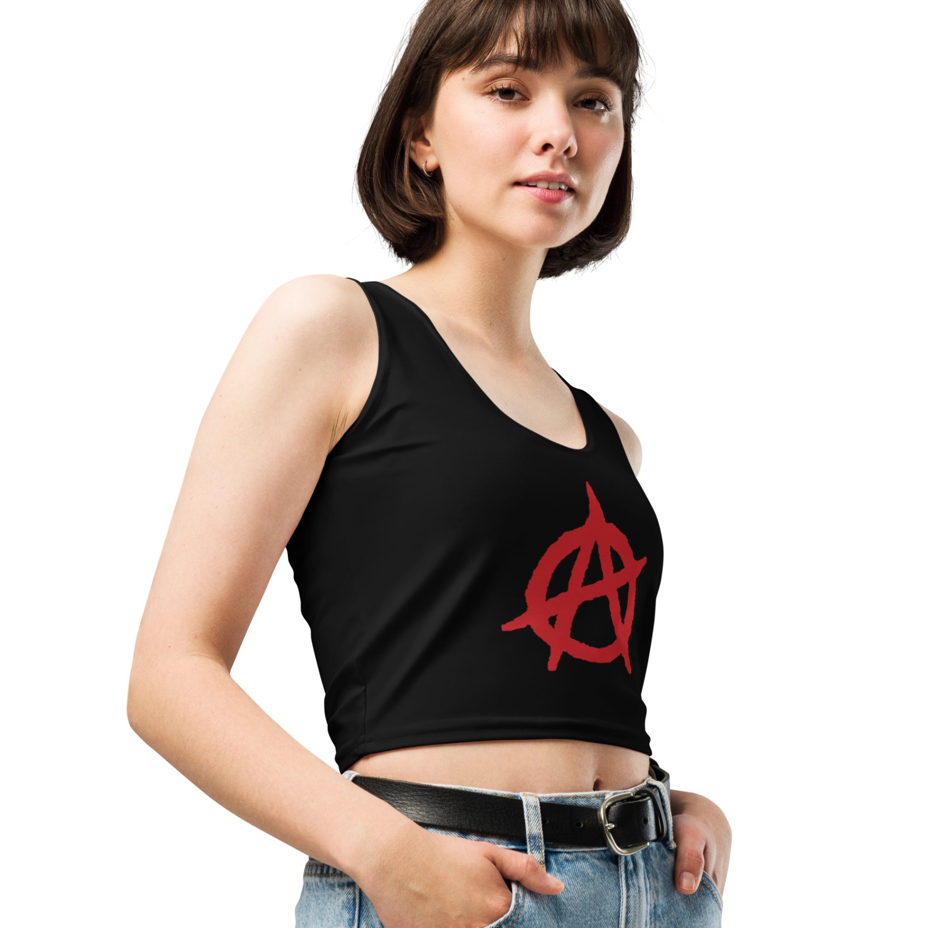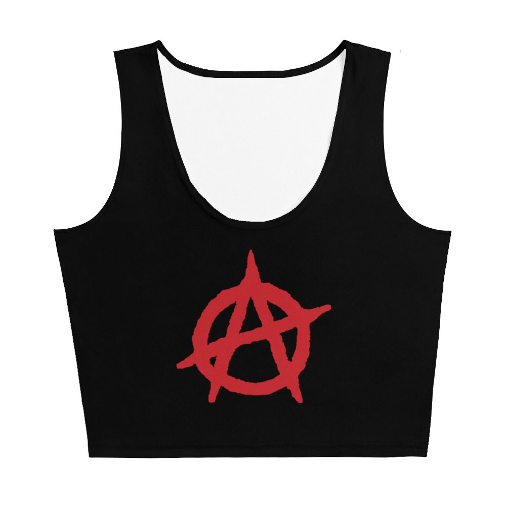 The Anarchy Crop Top Vest is a bold expression of anti-authoritarian values and personal freedom. Featuring the classic anarchist symbol, this crop top is designed for those who challenge power, resist control, and believe in radical self-determination.