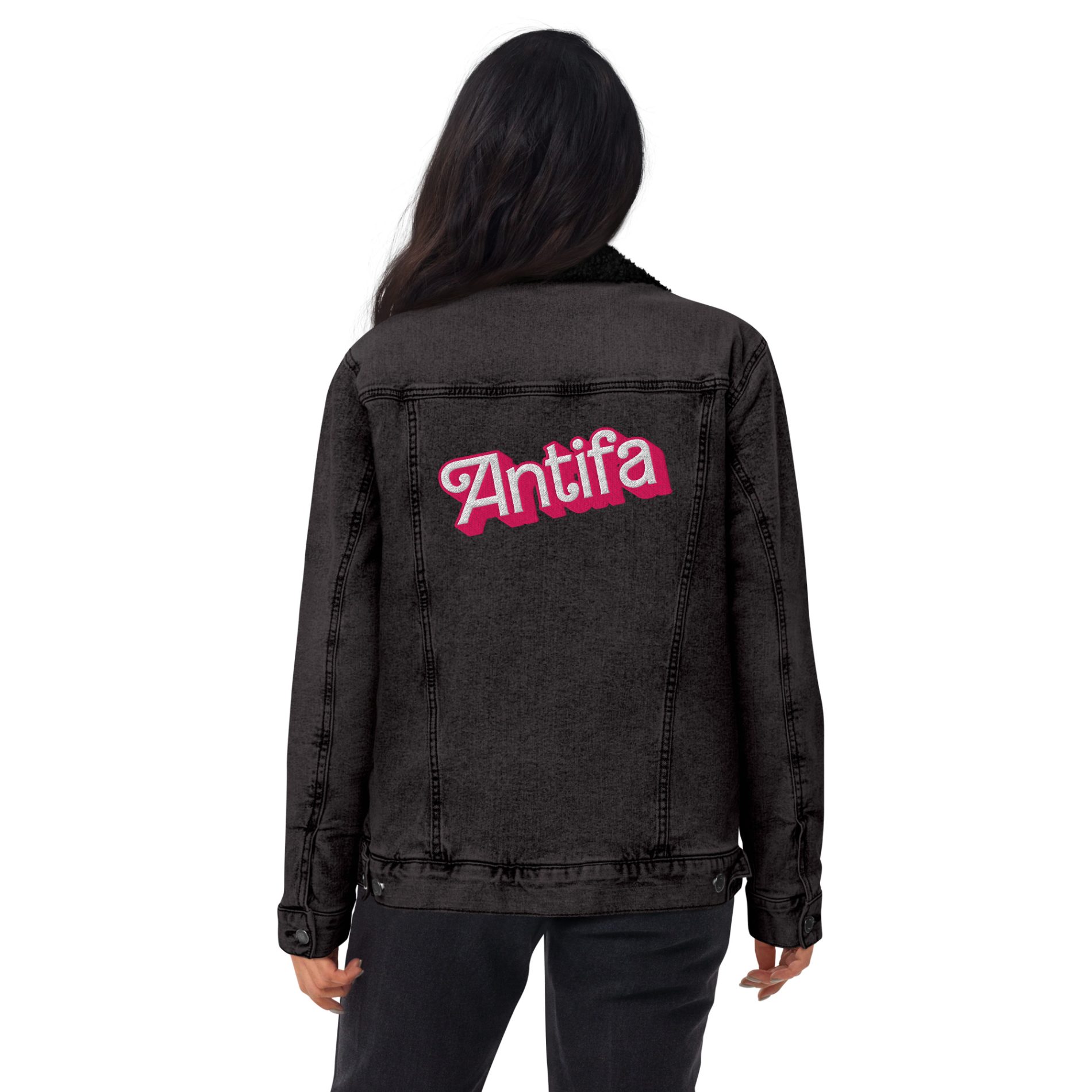 The Antifa Barbie Denim Sherpa Jacket is where vintage style meets modern resistance. Featuring a bold Antifa design in a Barbie-inspired font, this jacket turns pop culture pink into a powerful statement against fascism and oppression.