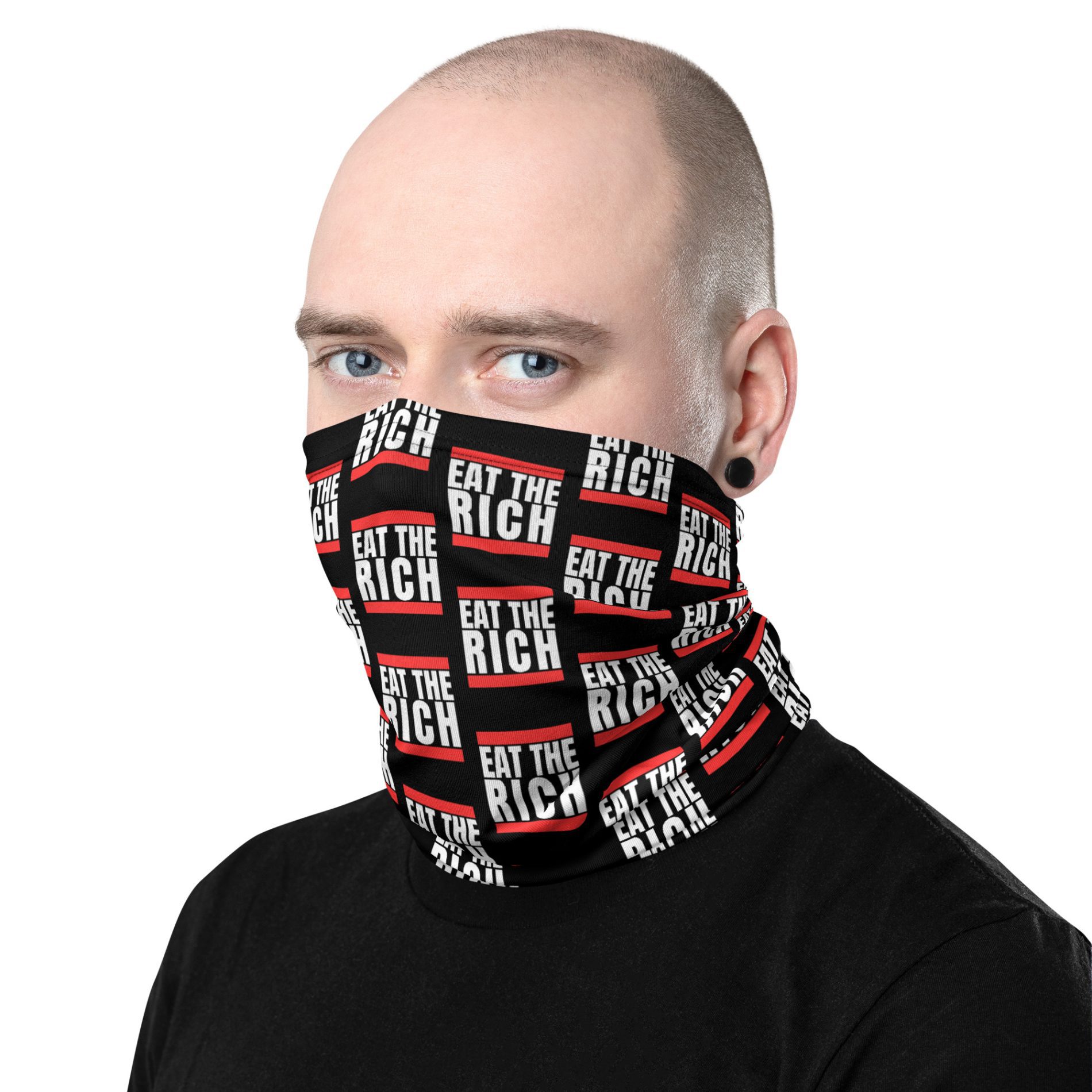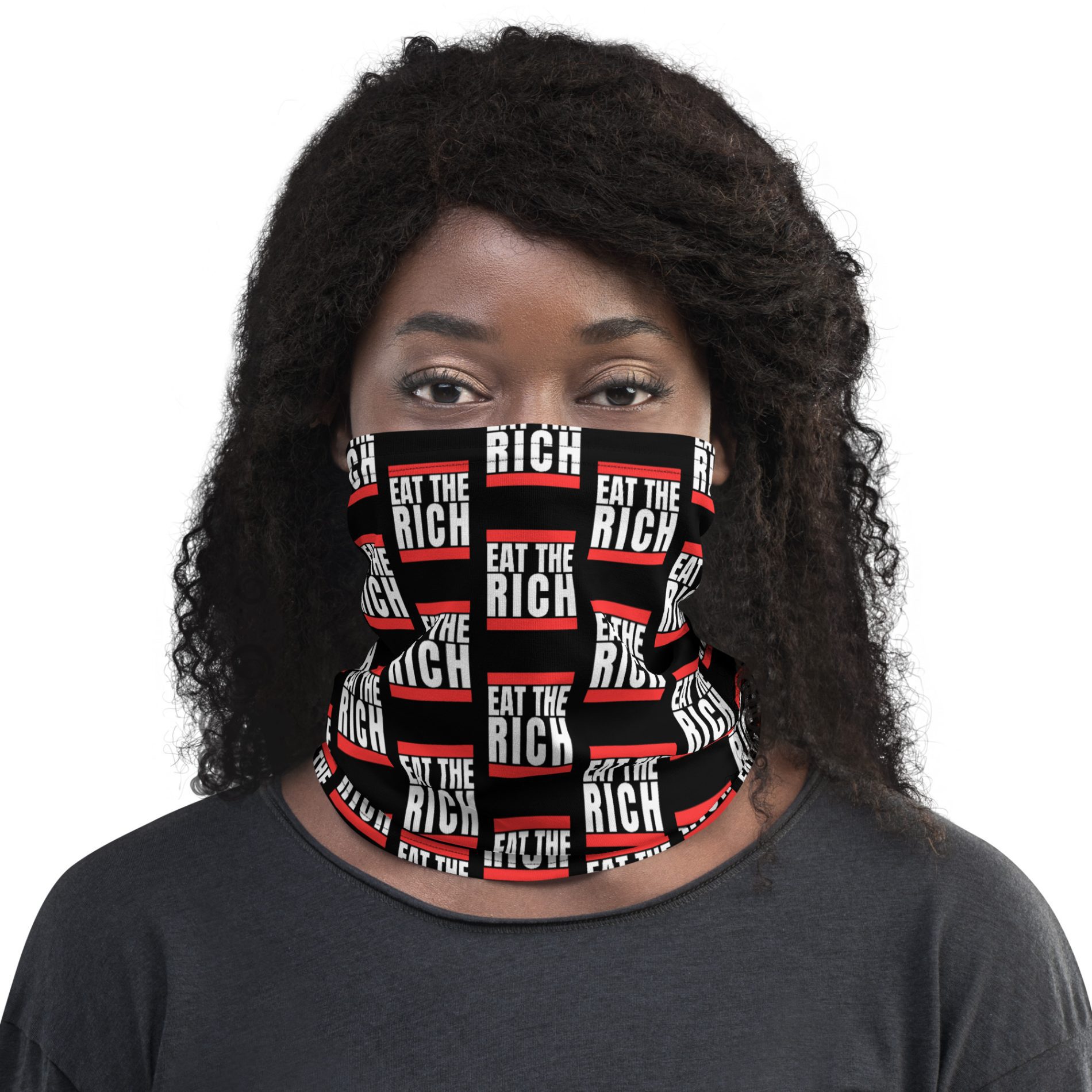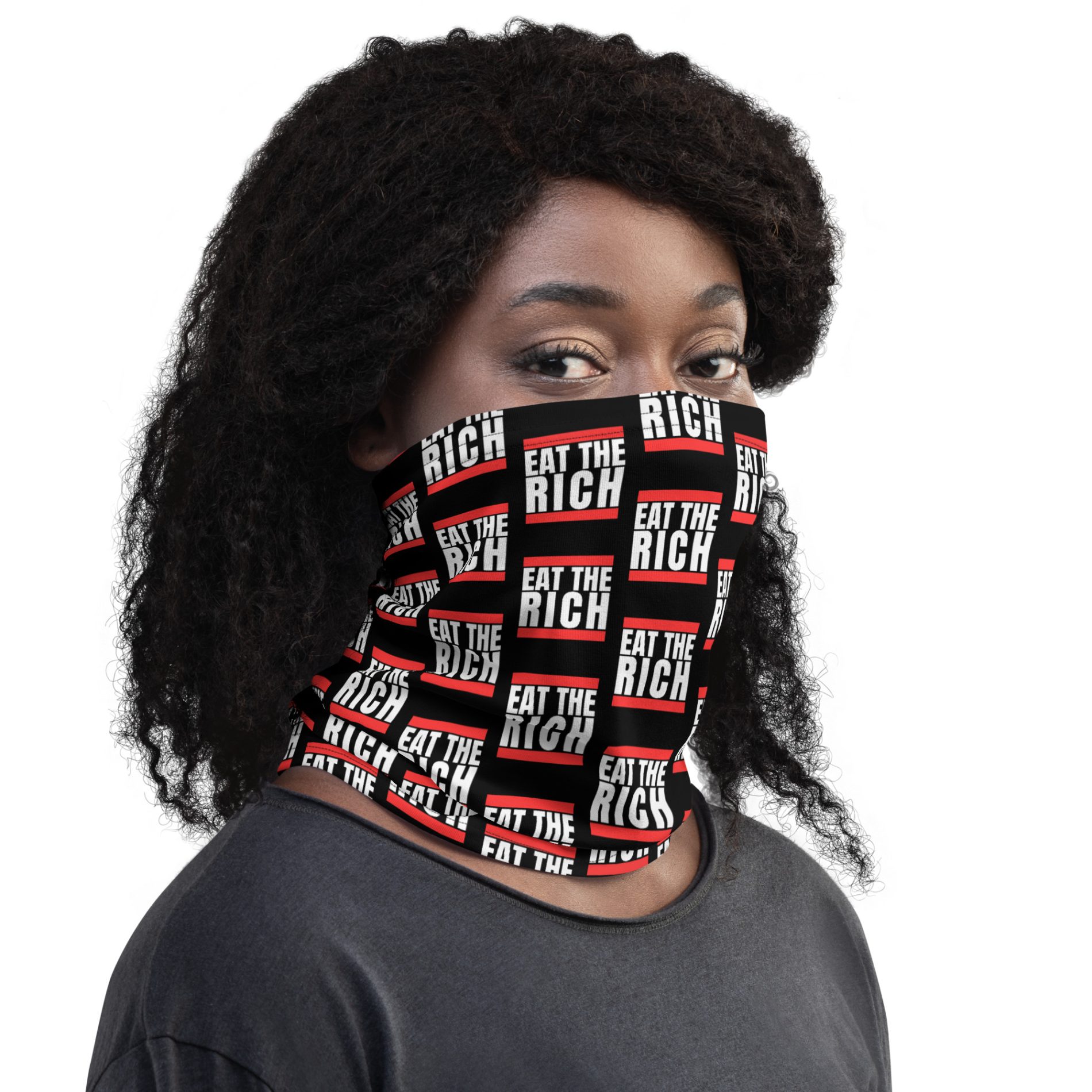 Whether you're taking to the streets or resisting through fashion, the Eat the Rich Neck Gaiter Face Cover is your go-to piece for visible, unapologetic dissent.