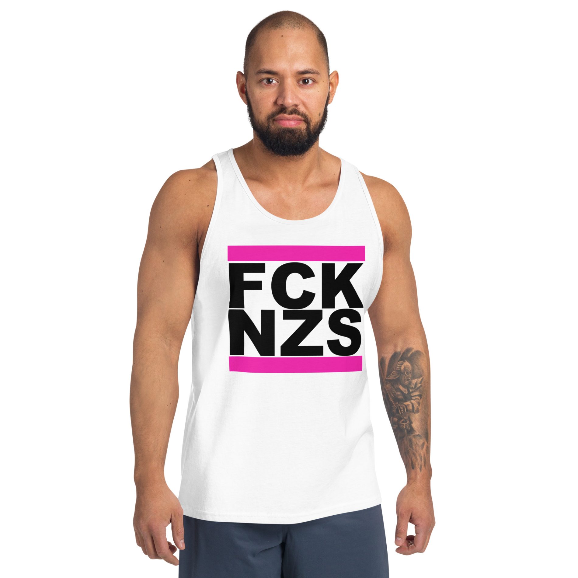 The FCK NZS Pink Unisex Tank Top Vest brings antifascist resistance into warm-weather wear with a bold new look. Featuring the iconic FCK NZS design with pink panels replacing the traditional red, this tank top makes a powerful statement without compromising on comfort.