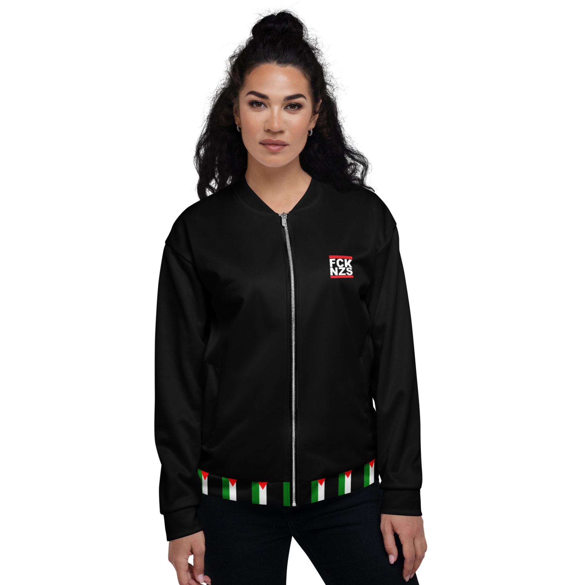 With a clean silhouette and unmistakable symbolism, this bomber is made for streets, protests, and everyday resistance. Free Palestine – wear it loud, wear it proud.