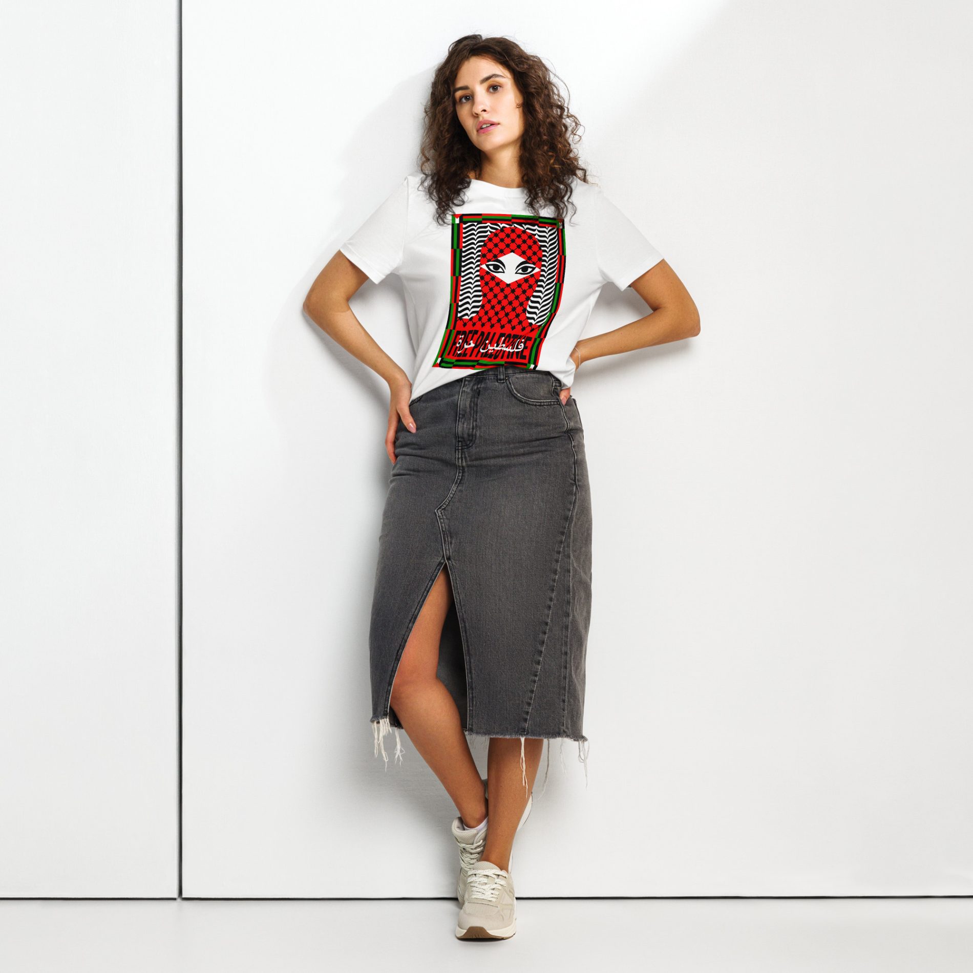 The Free Palestine Women’s Organic T-Shirt is a bold and ethical way to show your solidarity with the Palestinian people and their ongoing fight for justice, dignity, and freedom. Designed to make a statement, this tee combines a flattering fit with eco-conscious production.