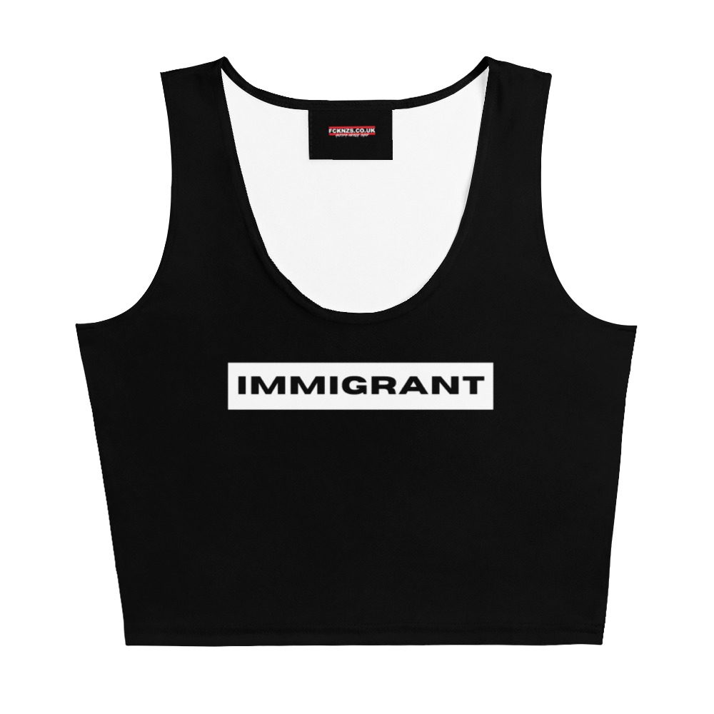 The IMMIGRANT Crop Top Vest is a fearless blend of activism and style. Designed for those who wear their pride unapologetically, this piece celebrates the strength and resilience of immigrants who continue to build, work, and thrive in the face of hate and division. Minimalist, bold, and powerful – it’s solidarity stitched into every seam.