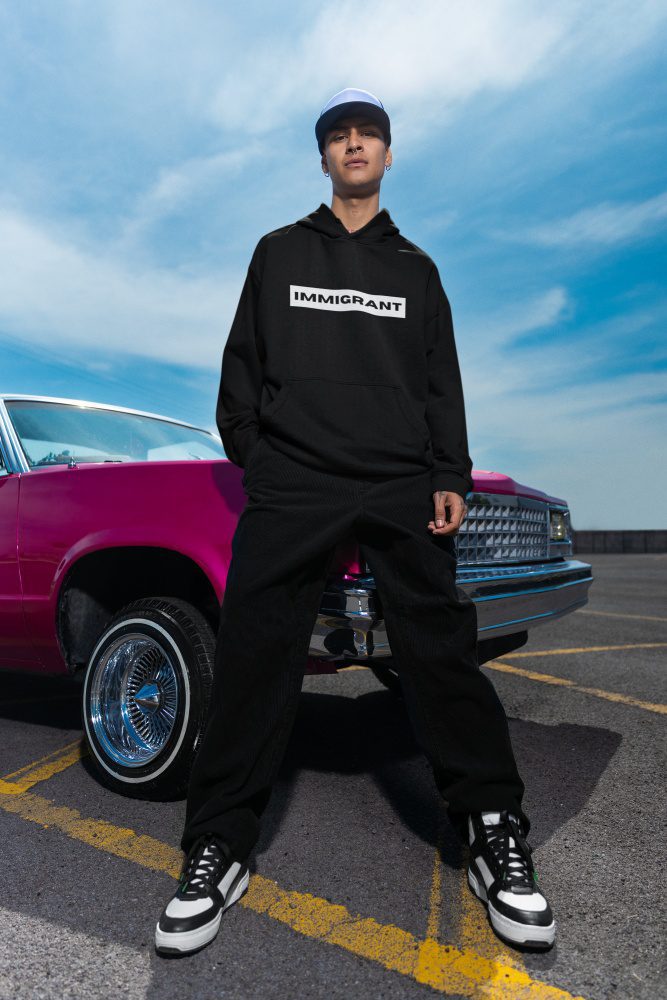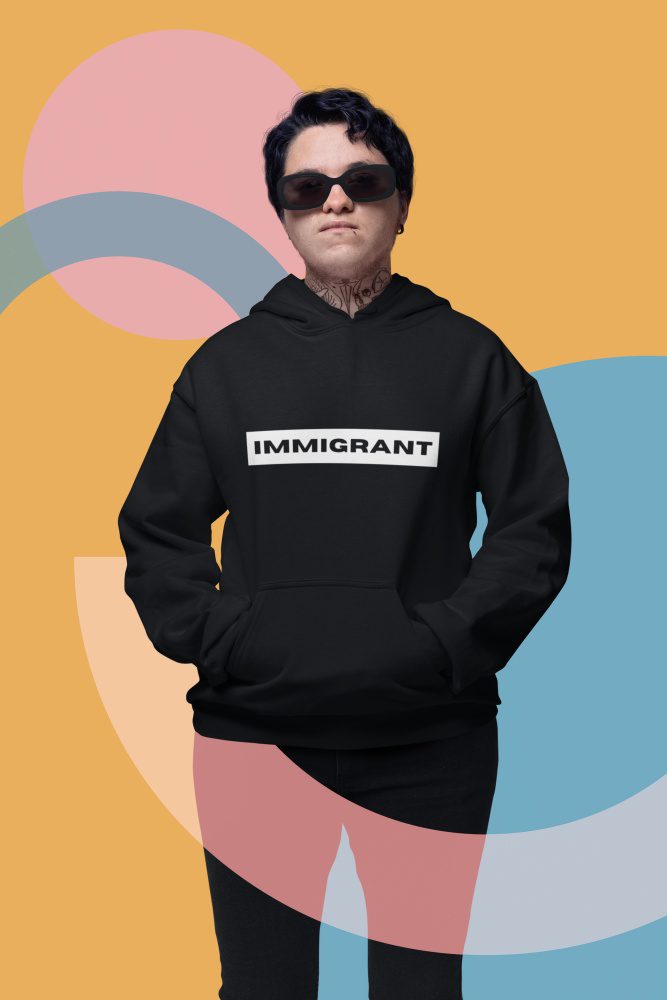 The IMMIGRANT Unisex Hoodie is a bold statement of strength, identity, and resistance. Designed for those who take pride in their roots and refuse to be silenced, it stands as a tribute to every immigrant who continues to build, fight, and thrive against all odds. Minimalist yet powerful, it’s more than a hoodie – it’s solidarity you can wear.
