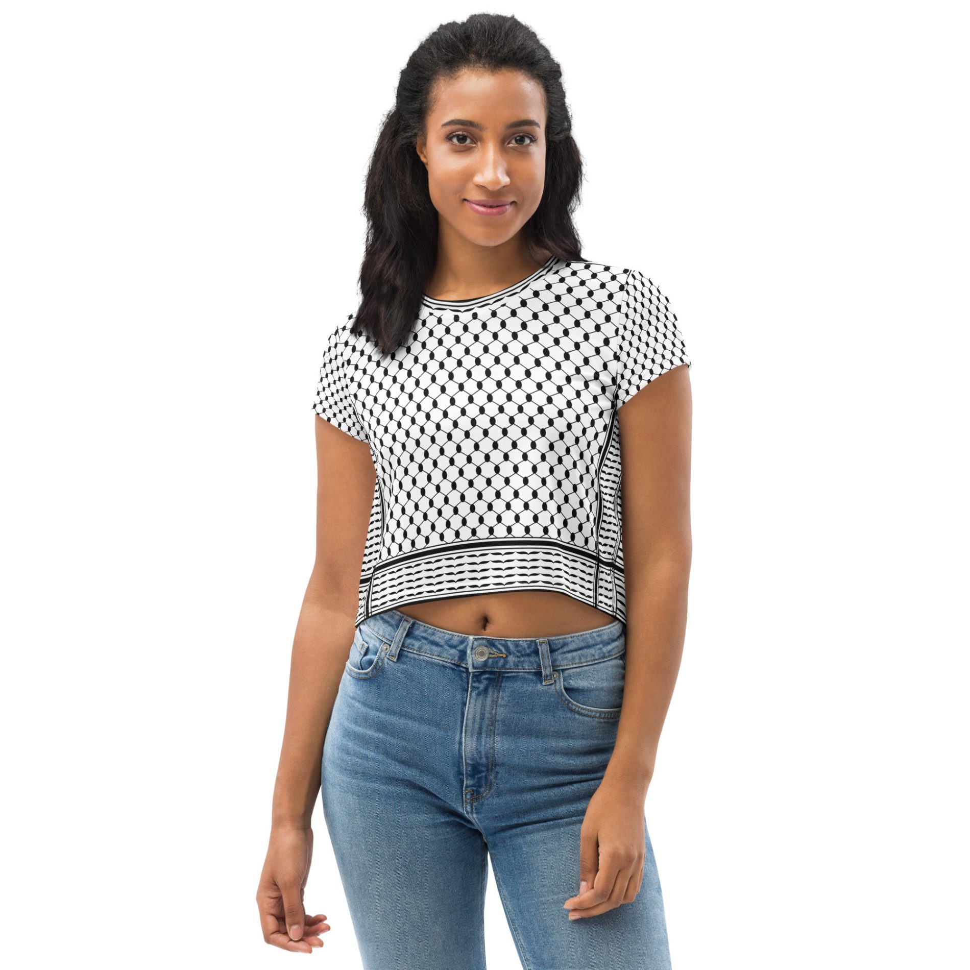 Wear the Kufiya (Keffiyeh) Crop Top as a statement of solidarity—because resistance, culture, and ethical fashion belong in every wardrobe.