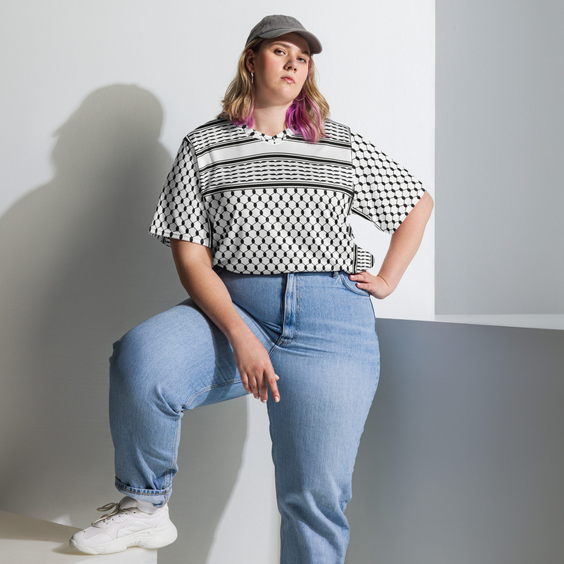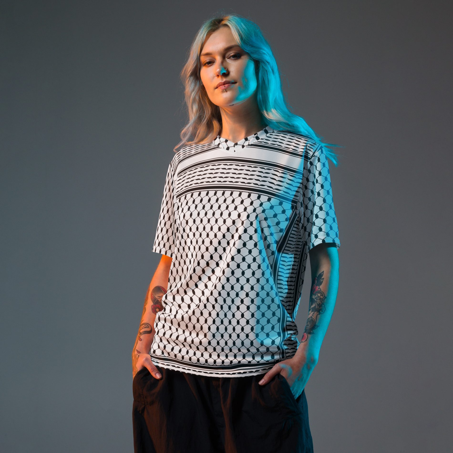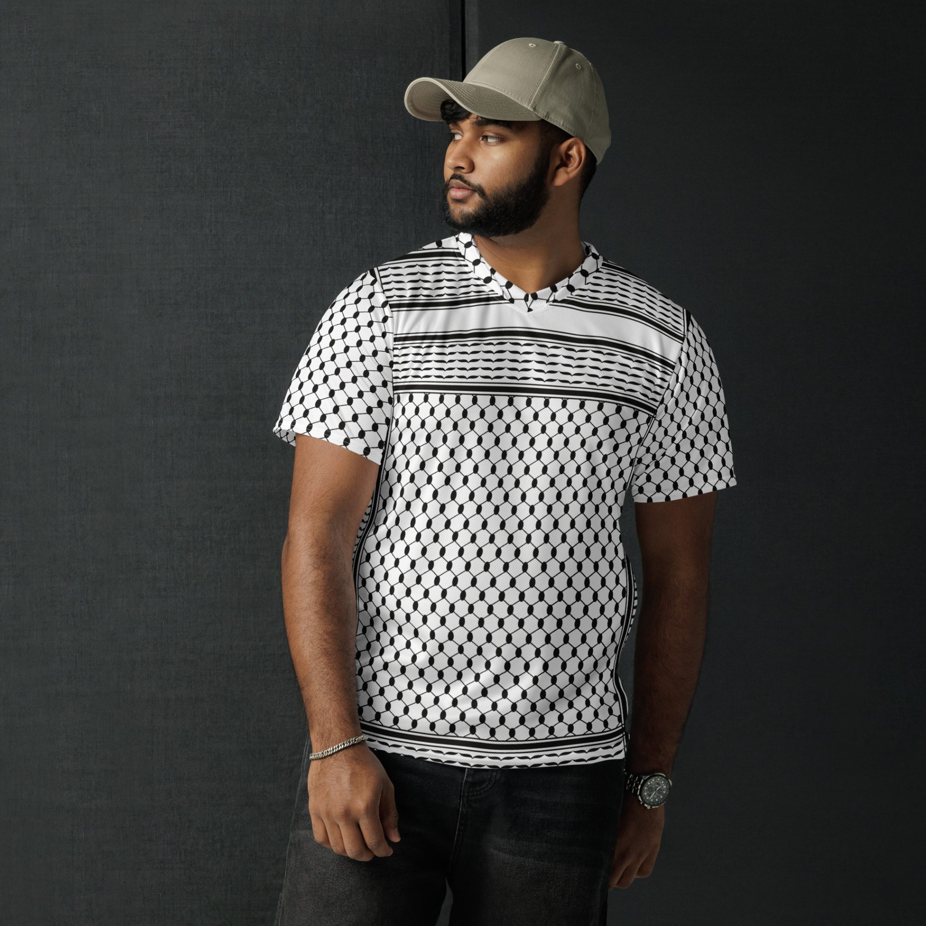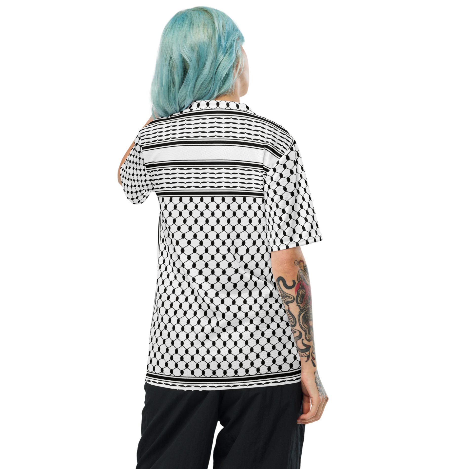 The Kufiya (Keffiyeh) Recycled Unisex T-Shirt transforms an iconic symbol of Palestinian resistance into a bold, sustainable fashion statement. Featuring the traditional kufiya pattern, this shirt honours cultural identity while standing firmly for justice and liberation.