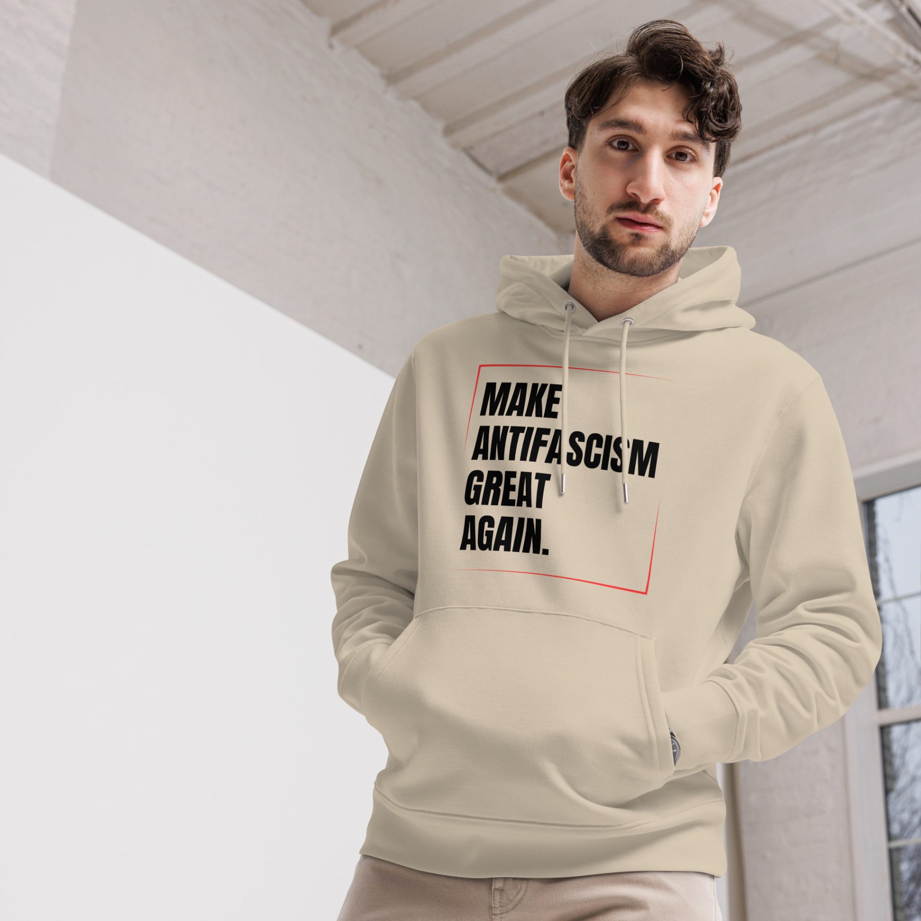 With a relaxed unisex fit and clean finish, this hoodie is perfect for street protests, campus organising, or daily wear that doesn’t water down your message. Make antifascism visible. Make it everyday. Make it great again – for real.