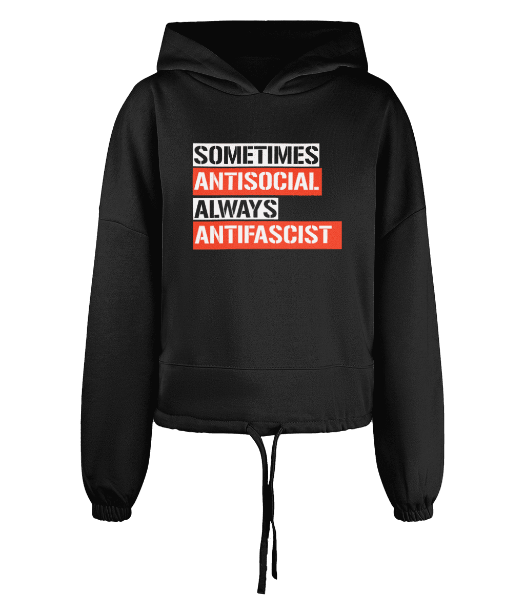 Sometimes Antisocial Always Antifascist Women’s Cropped Oversized Hoodie
